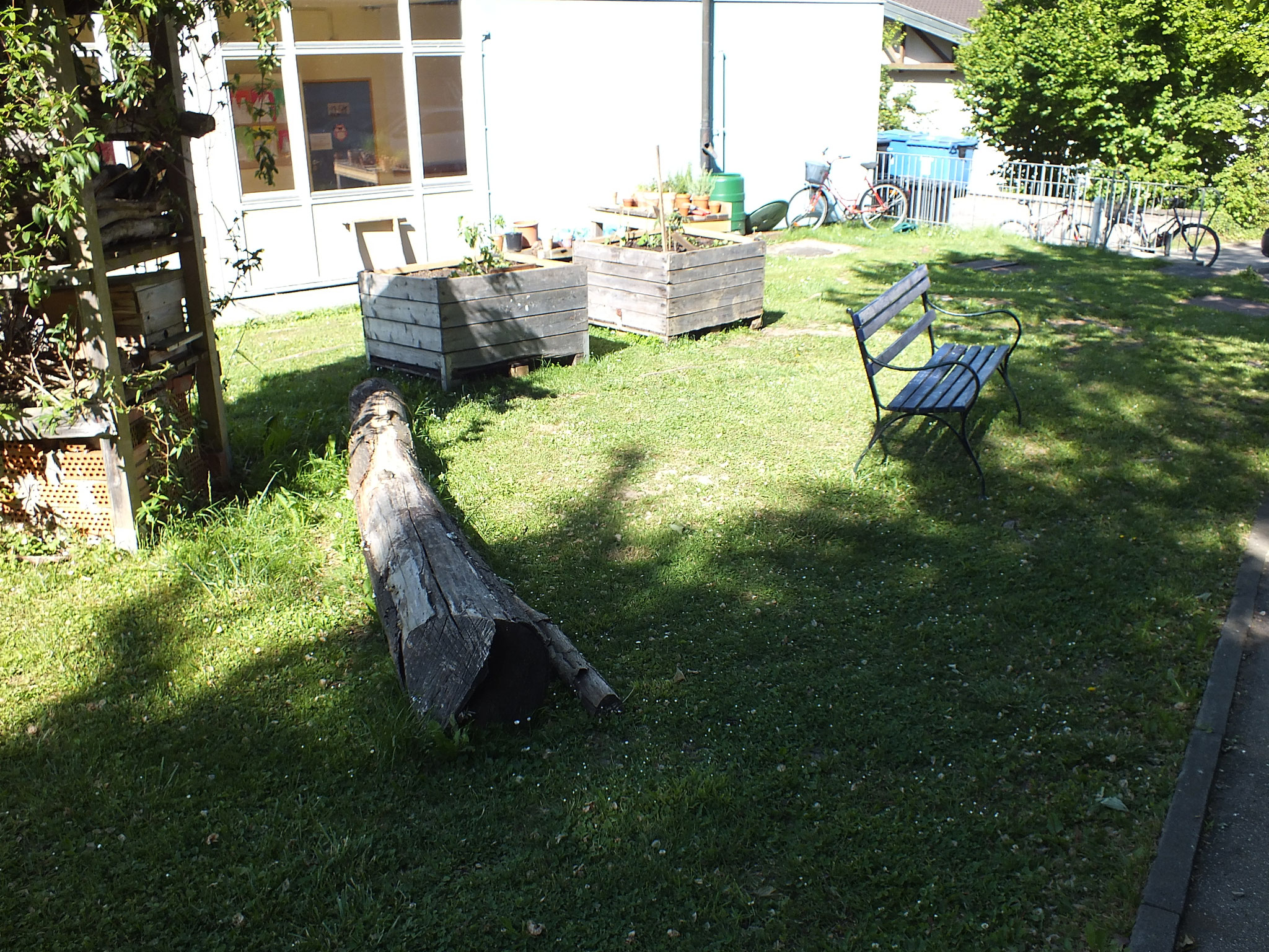 Nachdem unser wunderschöner alter Schulgarten Baggern und Bauarbeiten weichen musste, hat Deliah Roth einen neuen, kleinen Hochbeet-Schulgarten mit den beiden vierten Klassen hinter dem Schulhaus gestaltet.